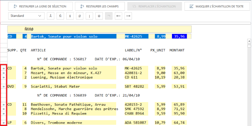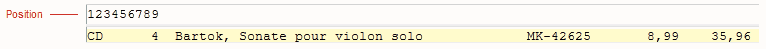 Par exemple, dans l’illustration ci-dessous, toutes les lignes de détail présentent, en position 9, un chiffre suivi de deux caractères blancs.