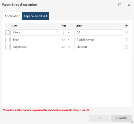 La boîte de dialogue Paramètres d’exécution s’affiche.