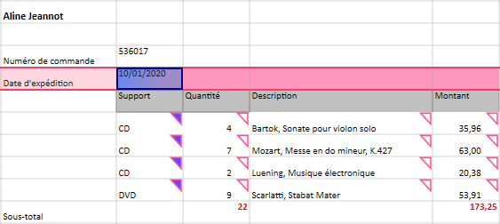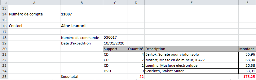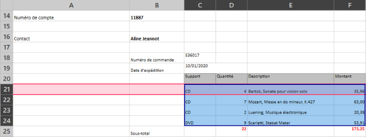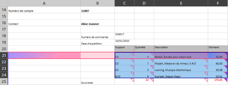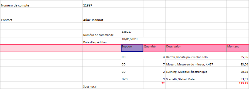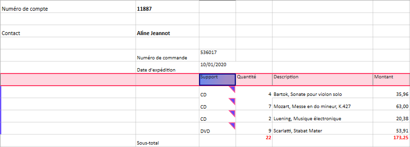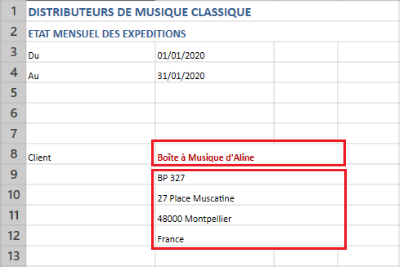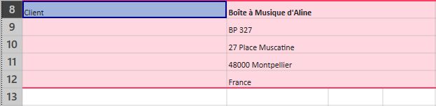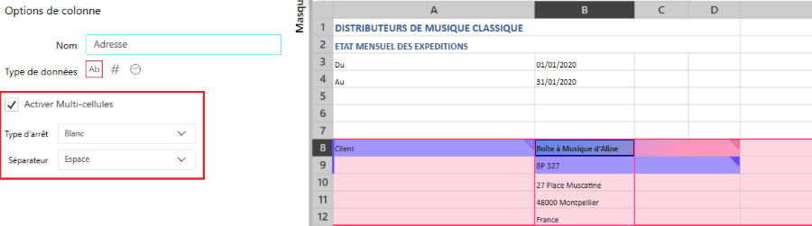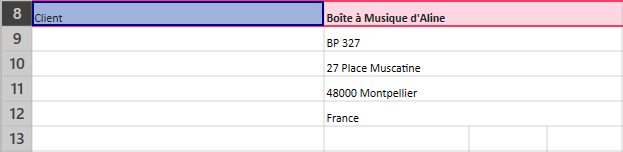 colonne multiligne dont la valeur s’étend sur plusieurs lignes (Adresse du client)