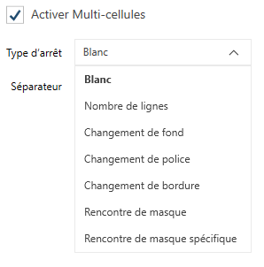 Blanc : Sélectionnez cette option pour terminer la colonne sur rencontre d'une cellule vide.