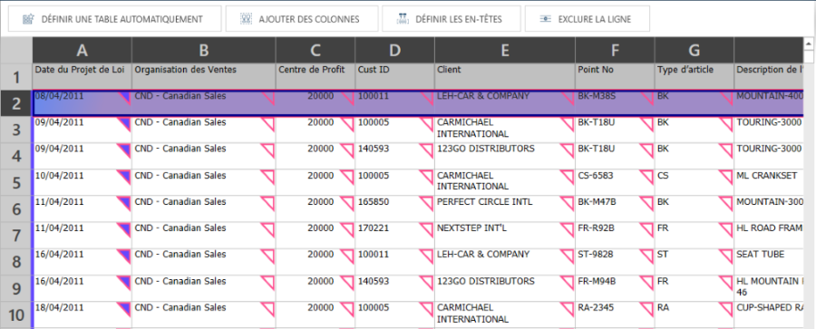 Notez que l’en-tête a été inclus. Vous pouvez simplement sélectionner cette ligne et l’exclure ou la définir comme en-tête en utilisant l’outil Définir les en-têtes.