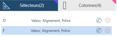 Les sélecteurs et les colonnes sont ajoutés et inclus à la liste des sélecteurs et des colonnes pour le masque actuel :
