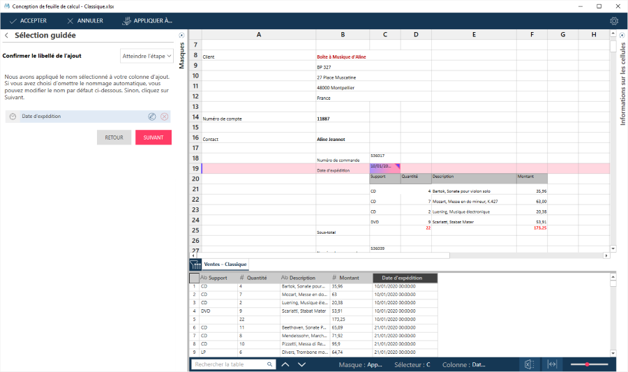 Une fois que vous avez sélectionné une cellule d’ajout, les valeurs sont ajoutées à votre aperçu :