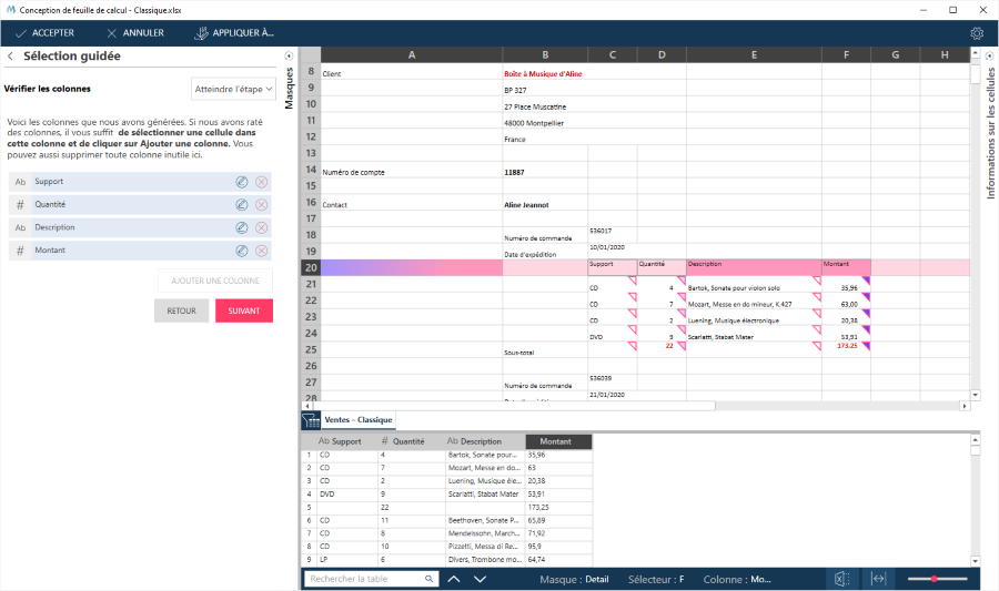 L’assistant sélectionne/capture toutes les colonnes dans les lignes semblables à la ligne de détail que vous avez sélectionnée.