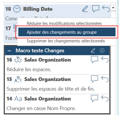 Cliquez avec le bouton droit et, parmi les options qui s’affichent, choisissez Ajouter les changements sélectionnés au groupe.