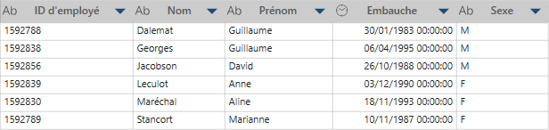 Considérez, par exemple, les tables d’employés suivantes :