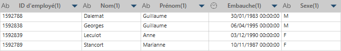 Table 2 d’employés (table de droite)
