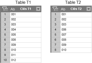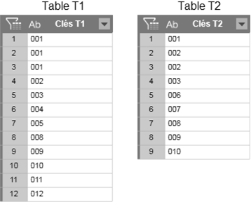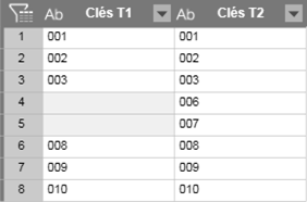 Garder toutes les lignes des deux tables. En l’absence de valeur correspondante dans les deux tables, des valeurs vides sont renvoyées.