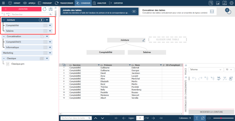 Après avoir chargé les données dans la fenêtre Préparer, cliquez sur Combiner > Joindre pour activer l’étape de jointure.