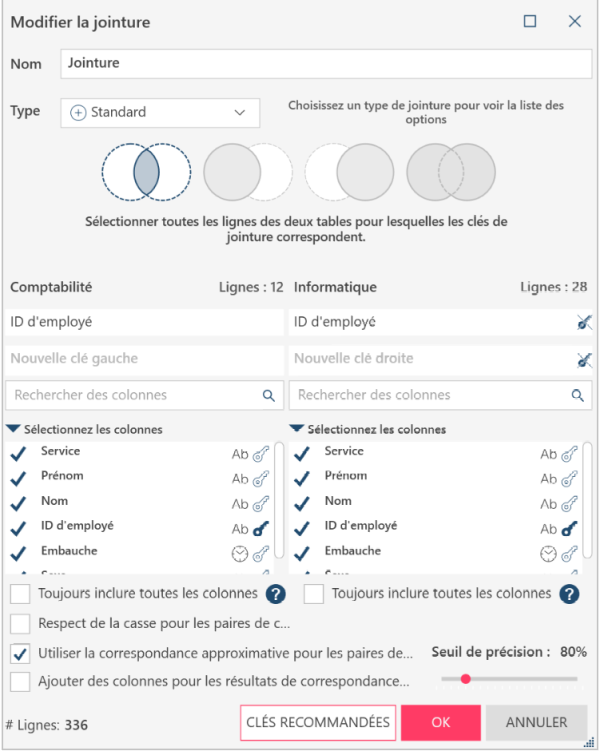 Dans la boîte de dialogue Modifier la jointure, sélectionnez Clés recommandées.