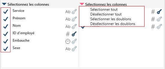 Sélectionner ou désélectionner toutes les colonnes