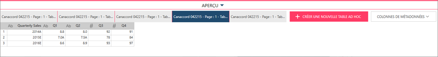 Une nouvelle table, dotée de son propre onglet, s’ajoute aux tables du panneau. Par défaut, cette table est nommée : Table personnalisée