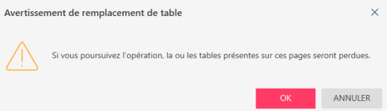 Lorsque vous utilisez Définition automatique pour capturer des tables, toutes les tables définies auparavant sont remplacées par les tables définies automatiquement. Un message vous prévient avant que vous ne puissiez continuer.