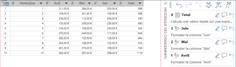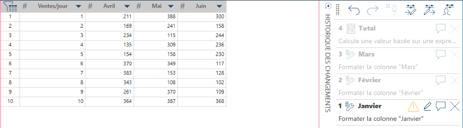 Dans une session de préparation de données, vous pouvez apporter des modifications à une table (table A) que vous voulez aussi appliquer à une autre table (table B). Un moyen simple est d’ouvrir la table B dans Data Prep Studio et d’y copier l’historique des changements de la table A par glisser-déplacer.