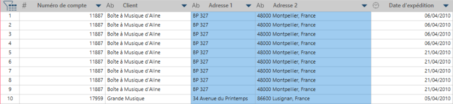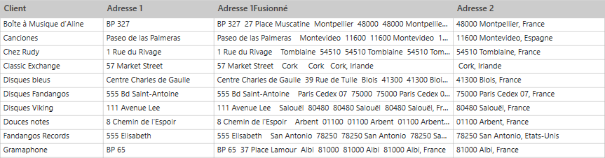 Sélectionnez OK. Les colonnes sélectionnées sont fusionnées.