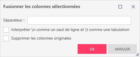 La boîte de dialogue Fusionner les colonnes sélectionnées s’affiche :