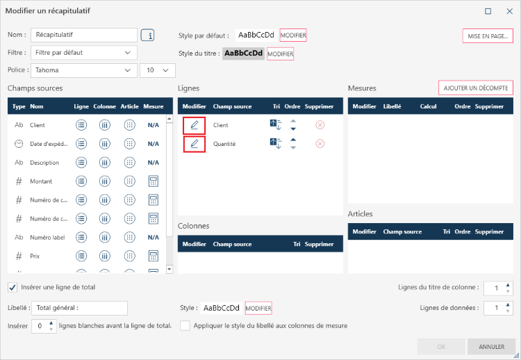 Sélectionnez le récapitulatif pour lequel vous voulez modifier les noms de champ de ligne, puis cliquez sur Modifier le récapitulatif.