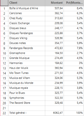 Figure 2. Récapitulatif des totaux des ventes par client.
