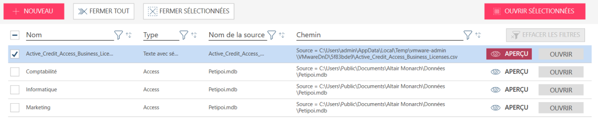 REMARQUE : Les tables qui nécessitent une mise à jour ou qui sont obsolètes (par exemple, celles dont les connecteurs ne sont plus pris en charge dans Monarch) ne s’affichent pas dans la liste des tables à prévisualiser.