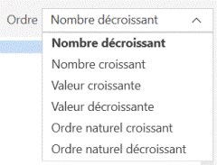 Pour déterminer comment s’affichent les valeurs d’une colonne spécifiée, sélectionnez une option dans la liste Trier par du volet Statistiques de colonne.