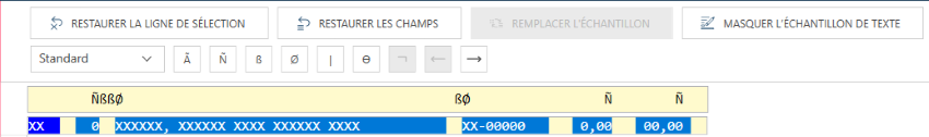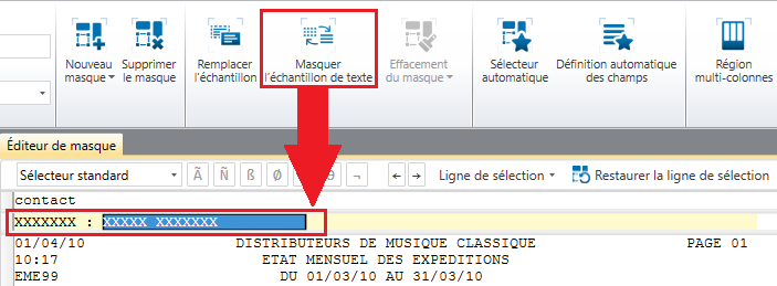 Dans Monarch Data Prep Studio, le bouton Masquer l’échantillon de texte se trouve dans la barre d’action du masque.