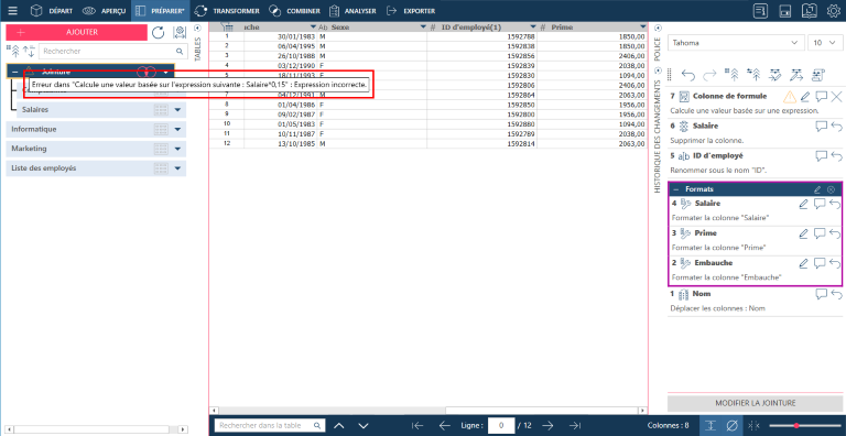 Data Prep Studio permet de réorganiser les changements comme bon vous semble dans la liste d’historique des changements.