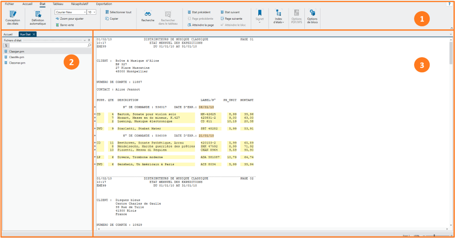 Exportation d’un ou de plusieurs états, de la table correspondante et des récapitulatifs associés