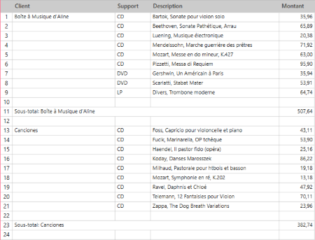 À titre d’exemple, vous pouvez supprimer des valeurs de noms de l’acheteur en double dans cet exemple :