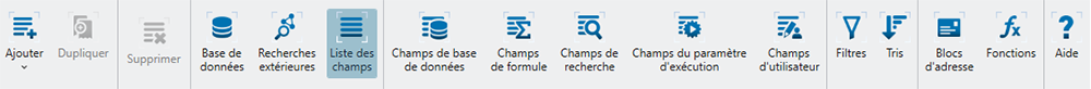 Affiche la liste des champs présents dans la table et permet de modifier leurs propriétés.