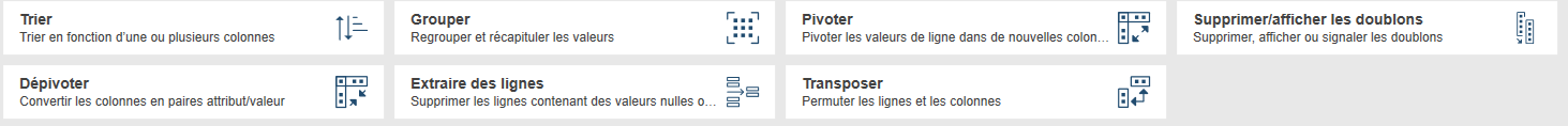 Le volet Transformer permet de manipuler les colonnes de manière à visualiser les données de façon différente.