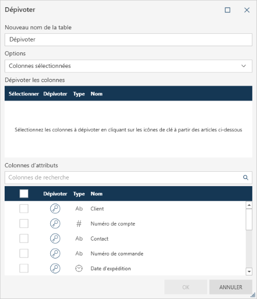Sélectionnez Dépivoter pour afficher la boîte de dialogue Dépivoter :
