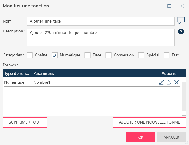 - Cliquez sur OK dans la boîte de dialogue Modifier une fonction.