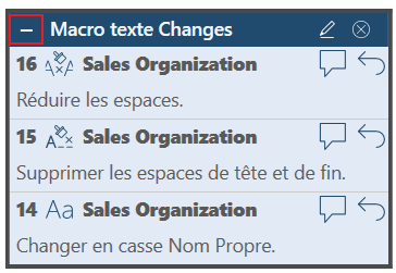 Il est possible de réduire et de développer les groupes de changements en cliquant sur les boutons Réduire