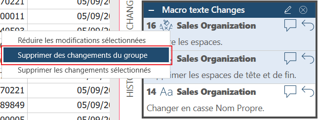 Vous pouvez supprimer un groupe de changements en cliquant sur le bouton Supprimer