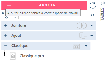 à gauche du nom des tables jointes, concaténées ou transformées, et en identifiant l’opération réalisée sur la droite, par ex.