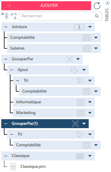 Ainsi, les utilisateurs bénéficient d'une vue structurée sur l’ensemble des opérations réalisées sur une table. Dans le cas présent, la table la plus récente est affichée en haut de l’arborescence.