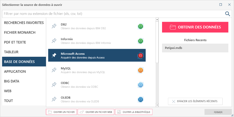 Fichiers et sources de données récents