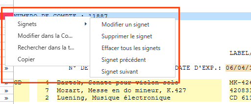 Cliquez avec le bouton droit sur la ligne assortie d’un signet et choisissez Signets, puis Modifier le signet dans le menu contextuel.