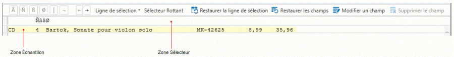 La zone Échantillon et la zone Sélecteur. La zone Sélecteur renferme un seul sélecteur numérique défini.