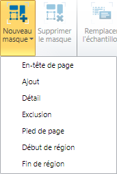 Remarque : Bien que plusieurs masques d’ajout puissent être créés, le nombre total des masques d’ajout et de pied de page est limité à 20.