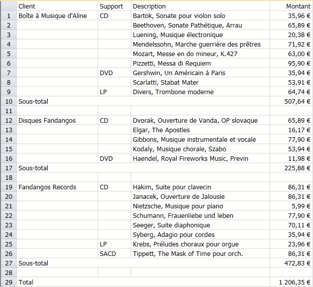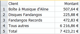 Récapitulatif réduit pour afficher le total des ventes détaillé par client.