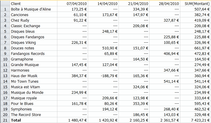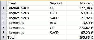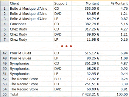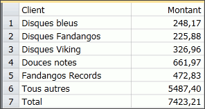 Utilisation de valeurs spécifiées pour limiter l'affichage des informations relatives à deux clients seulement (Disques bleus et Harmonica).