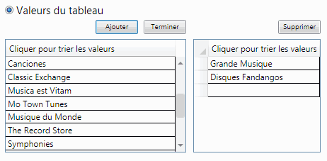 Sélectionner une valeur, puis cliquer sur Ajouter.