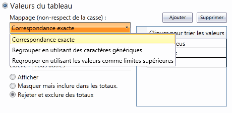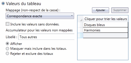 Dans les Valeurs du tableau, trois choix de mappage s'offrent à vous :