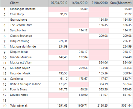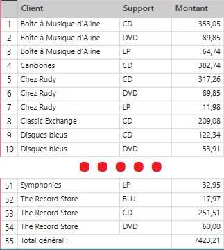 Utilisation de valeurs spécifiées pour limiter l’affichage des informations relatives à deux clients seulement (Disques bleus et Harmonica).