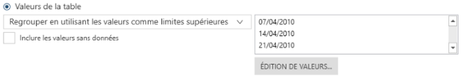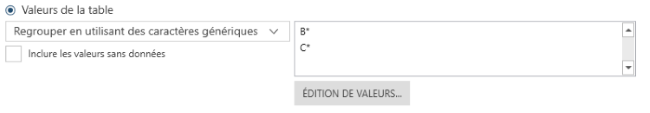 Si vous avez sélectionné l’option Valeurs de la table, cliquez sur le bouton Édition des valeurs pour afficher Valeurs de la table :