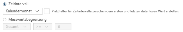 Cette option n’est activée que lorsque le champ clé est de type Date/heure. Lorsque cette option est sélectionnée, une liste déroulante comprenant les intervalles de temps possibles (par exemple, année calendaire, mois calendaire, semaine calendaire, etc.) est activée. Choisissez dans cette liste un intervalle de temps selon lequel les clés doivent être regroupées. Si vous souhaitez créer des intervalles de remplacement pour les lignes dont les données sont manquantes, cochez la case Générer des intervalles de remplacement pour les intervalles de temps entre le premier et le dernier qui n’ont pas de données. Notez que si vous cochez cette case, vous cochez également la case Inclure les valeurs qui n’ont pas de données.