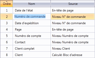 Sélectionnez la ligne correspondant au champ à déplacer.