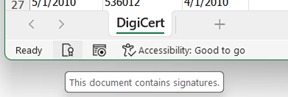 Viewing a digital signature in a signed Excel file