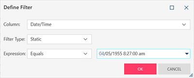 You can filter date/time values and to view only records with column values that contain a specific date or fall within a date range: